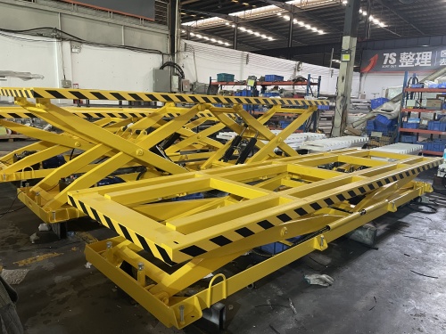 ในการผลิตเฟอร์นิเจอร์แผง ลิฟท์กรรไกรแบบไฮดรอลิกเป็นอุปกรณ์ลำเลียงแนวตั้งที่สำคัญซึ่งเชื่อมต่อกับพื้นและกระบวนการต่างๆ ขับเคลื่อนโดยระบบขับเคลื่อนไฮดรอลิก โดยอาศัยการขยายและการหดตัวของแขนกรรไกร เพื่อให้การยกโต๊ะทำงานเป็นไปอย่างราบรื่น